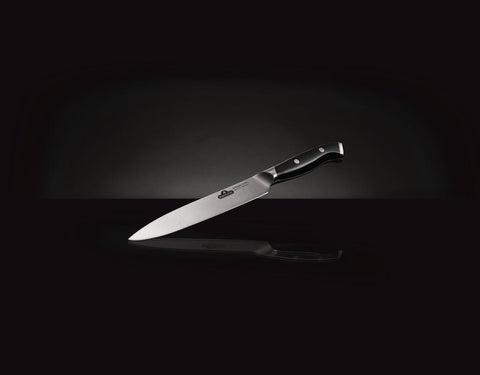 Napoleon's 8-inch Carving Knife is a beautiful addition to your knife block. The forged stainless steel runs the full length of the knife; the It is balanced from the tip, all the way through the tang. The dual riveted handle provides ergonomic comfort. This knife's blade is much thinner than an all-purpose chef's knife allowing for thinner and precise slicing of roasts, hams, and other large cooked meats. So, whether you are a gourmet grill master or a fanatical foodie, this Chef's Knife is perfect for your culinary arsenal.