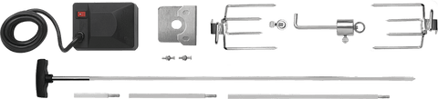 Whether you have a compact Rogue® 365, 425 or a large Rogue® 525 Series Model, this Stainless Steel, Heavy Duty, Multi-Piece Rotisserie Kit will fit your needs. Made with food grade stainless steel, the square spit rod features rod extensions to ensure that you can go the distance. The heavy-duty motor can turn up to 12 kilograms of a balanced load. The two four pronged forks will securely hold everything you could wish to spit roast and they tighten securely with easy to use thumb screws.